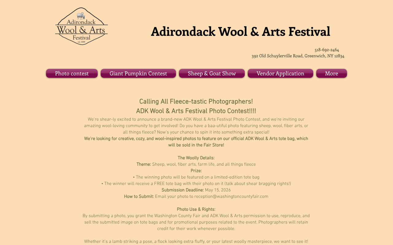 The Adirondack Wool & Arts Festival is a two-day festival held at the Washington County Fairgrounds in Greenwich, New York, tucked into farming country north of Saratoga Springs. You'll find handspun yarns and crafting supplies alongside the raw materials they started as: unprocessed fleece, roving, and wool from regional flocks. Sheep shearing demonstrations and a judged sheep and goat show run throughout the weekend, so you're shopping with the source of the fiber quite literally in the next building over. Workshops cover a range of fiber arts techniques, and a used equipment silent auction and fleece sale round things out. It's part marketplace, part agricultural fair, and a good excuse to spend a weekend surrounded by yarn and the animals that made it.