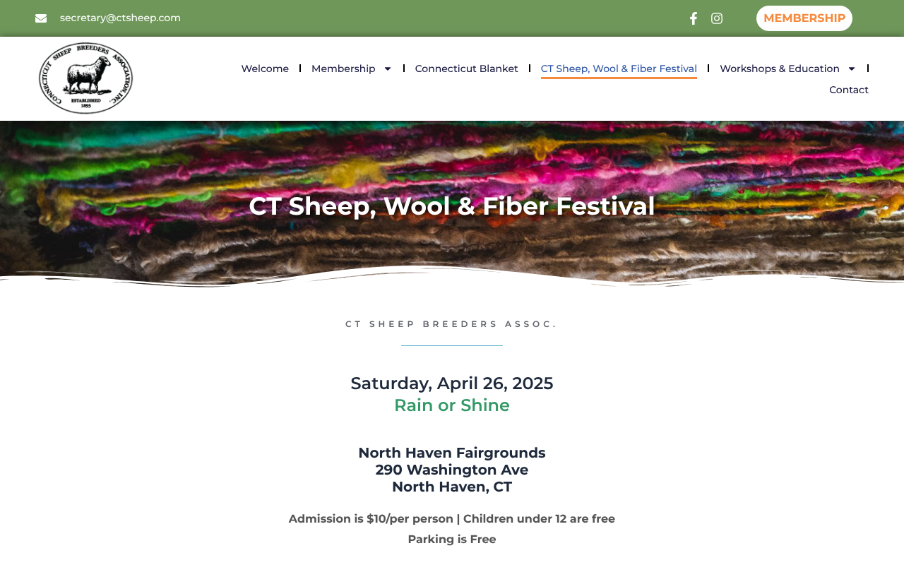 The CT Sheep, Wool & Fiber Festival is organized by the Connecticut Sheep Breeders Association, which has been supporting the state's sheep industry since 1893. That history shows in the festival's focus: vendors are Connecticut farmers selling natural fiber products directly from their farms, and the programming leans toward both the agricultural and craft sides of fiber. Workshops cover topics like wool quality and shearing techniques alongside fiber arts, and there's educational programming for youth interested in sheep husbandry. You're buying from the shepherds who raised the animals, which gives the shopping a directness you don't always get at larger festivals. If you're curious about the connection between breed, fleece, and finished yarn, this is a good place to ask questions.