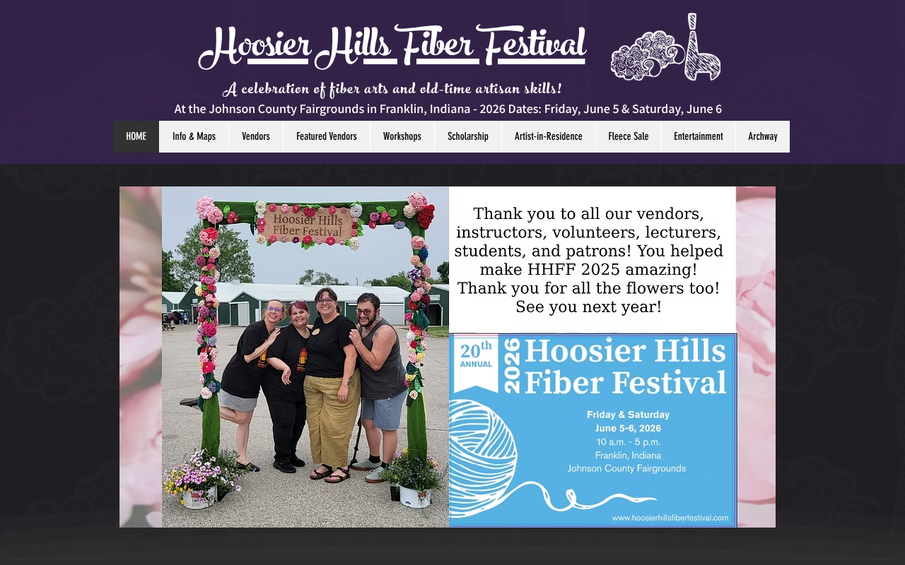 The Hoosier Hills Fiber Festival is a two-day event at the Johnson County Fairgrounds in Franklin, Indiana. What sets this one apart is how it frames fiber arts within a broader context of traditional artisan skills. An artist-in-residence program anchors the festival, and community archway projects (past themes have included butterflies and peonies) give attendees something collaborative to contribute to. Workshops, a lecture series, and demonstrations of traditional techniques run alongside a vendor marketplace and fleece sale. A spin-in and fiber arts competitions round things out. The artist-in-residence and community projects give the festival an intentionality that goes beyond the usual vendor-and-workshop model.