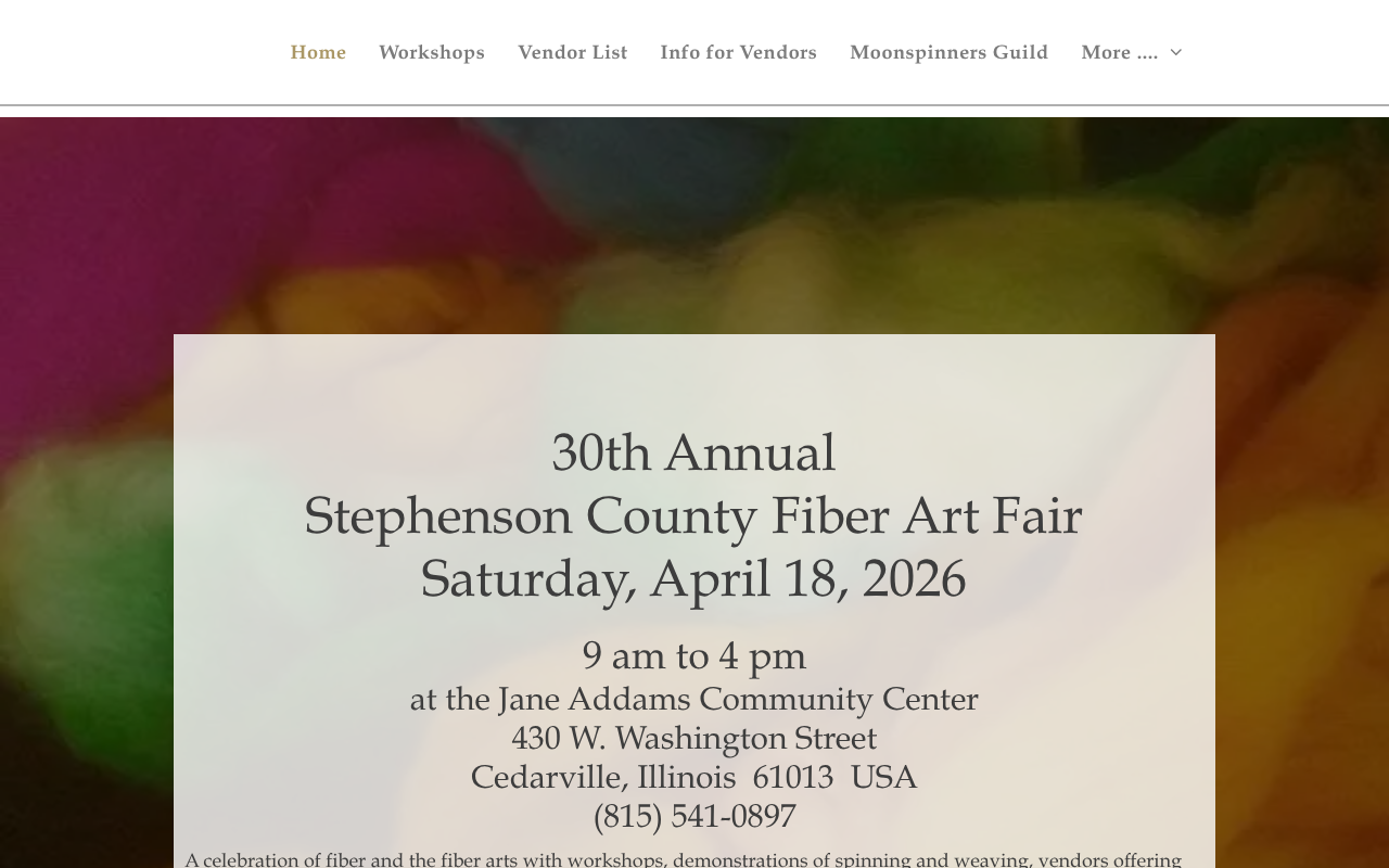 The Stephenson County Fiber Art Fair is a single-day event held at the Jane Addams Community Center in Cedarville, Illinois, now in its 30th year. Vendors offer fibers for spinning, finished yarn, dyes, books, equipment, handmade soap, baskets, and supplies for spinning, weaving, knitting, felting, dyeing, tatting, and crochet. Spinning and weaving demonstrations run throughout the day alongside workshops. The fair occasionally shifts its April date to avoid overlapping with other Midwest fiber events like YarnCon Chicago and the Greencastle Wool Event, so vendors and attendees can hit as many April shows as possible.