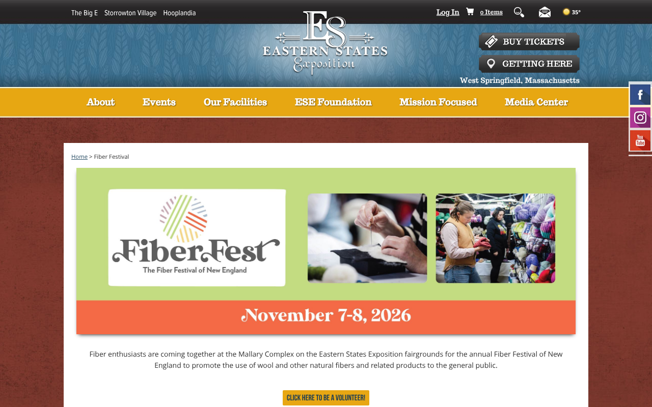 The Fiber Festival of New England runs two days at the Mallary Complex on the Eastern States Exposition fairgrounds in West Springfield, Massachusetts, the same 175-acre grounds that host The Big E, New England's largest agricultural fair. More than 150 vendors sell yarn, fleeces, looms, spinning wheels, and finished textiles, which makes the browsing substantial. Over 20 workshops cover techniques from felting and spinning to punch needle, crochet, and rug hooking. A fleece sale lets you purchase raw fleece directly. With 150-plus vendors and a fairground built to handle the scale of The Big E, there's room to spend two full days here without seeing everything twice.